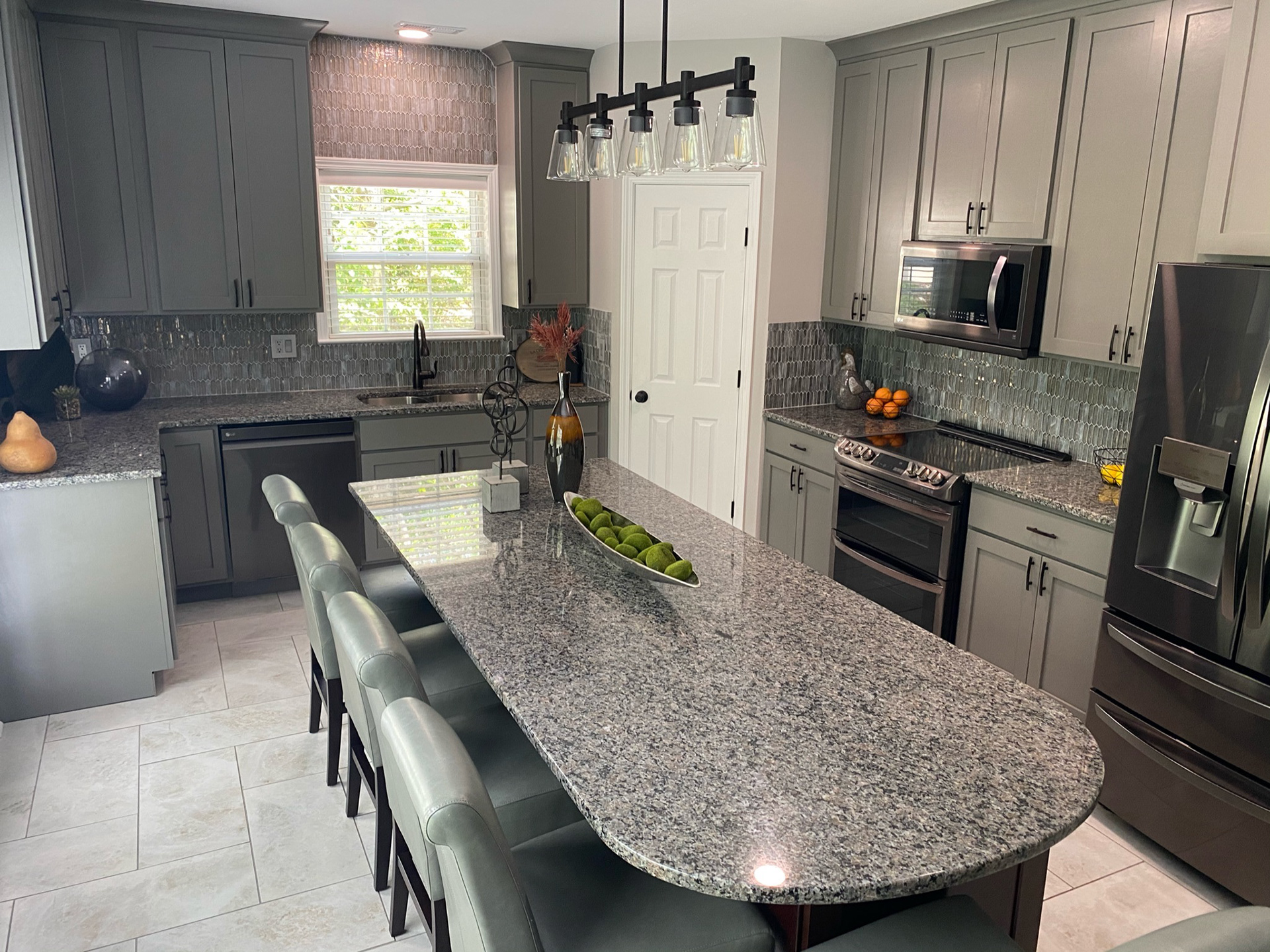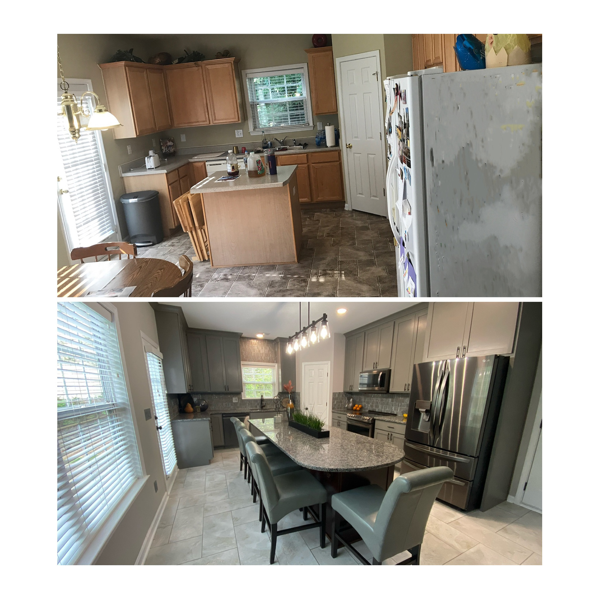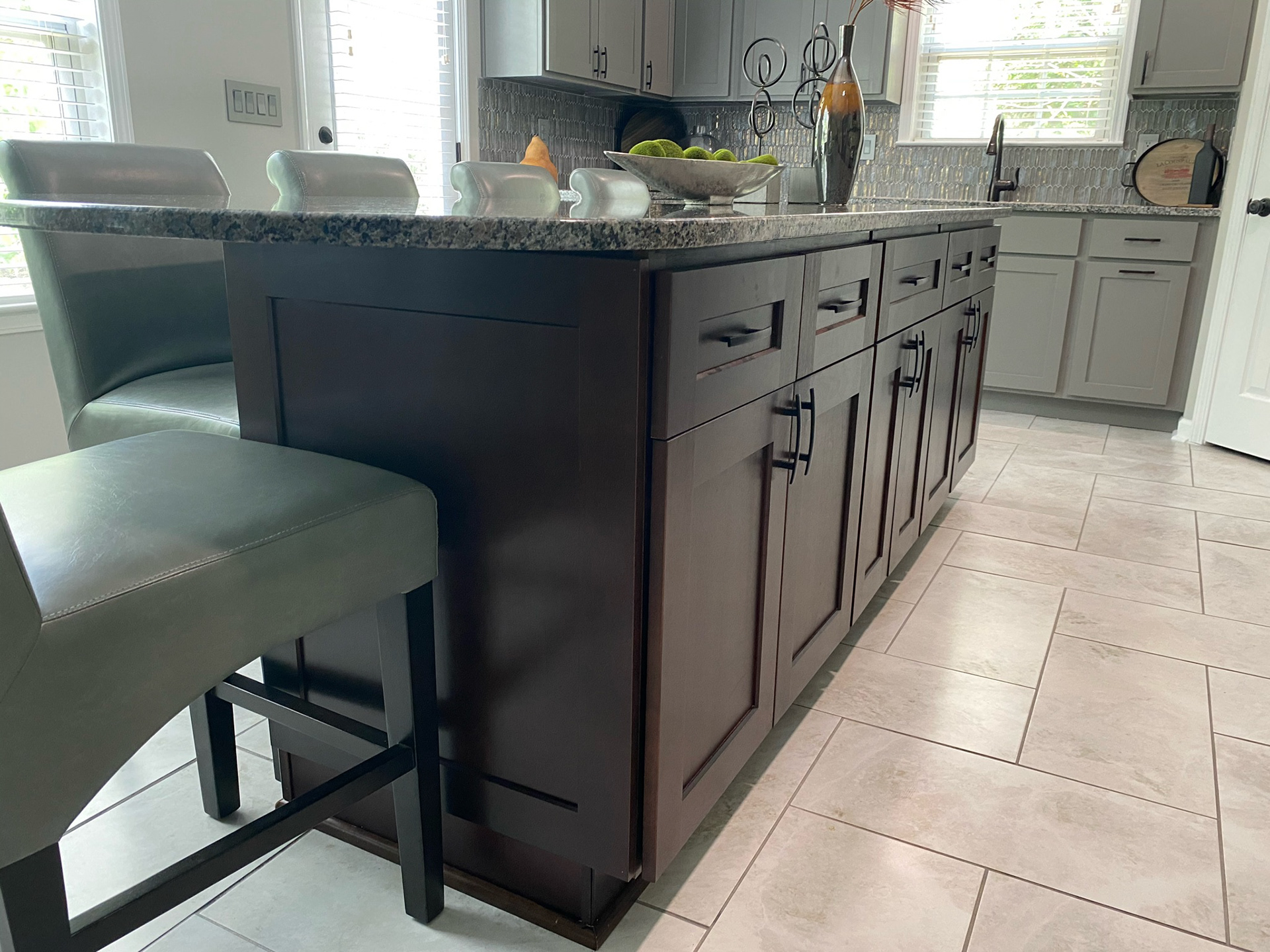 This client wanted to update their builder grade kitchen to one that was more functional and useful for their family. We combined the kitchen and eat-in kitchen areas by adding an oversized island for seating for up to five people. We also upgraded the flooring from linoleum tiles to porcelain tiles. This brought the homeowner’s kitchen from drab to fab.