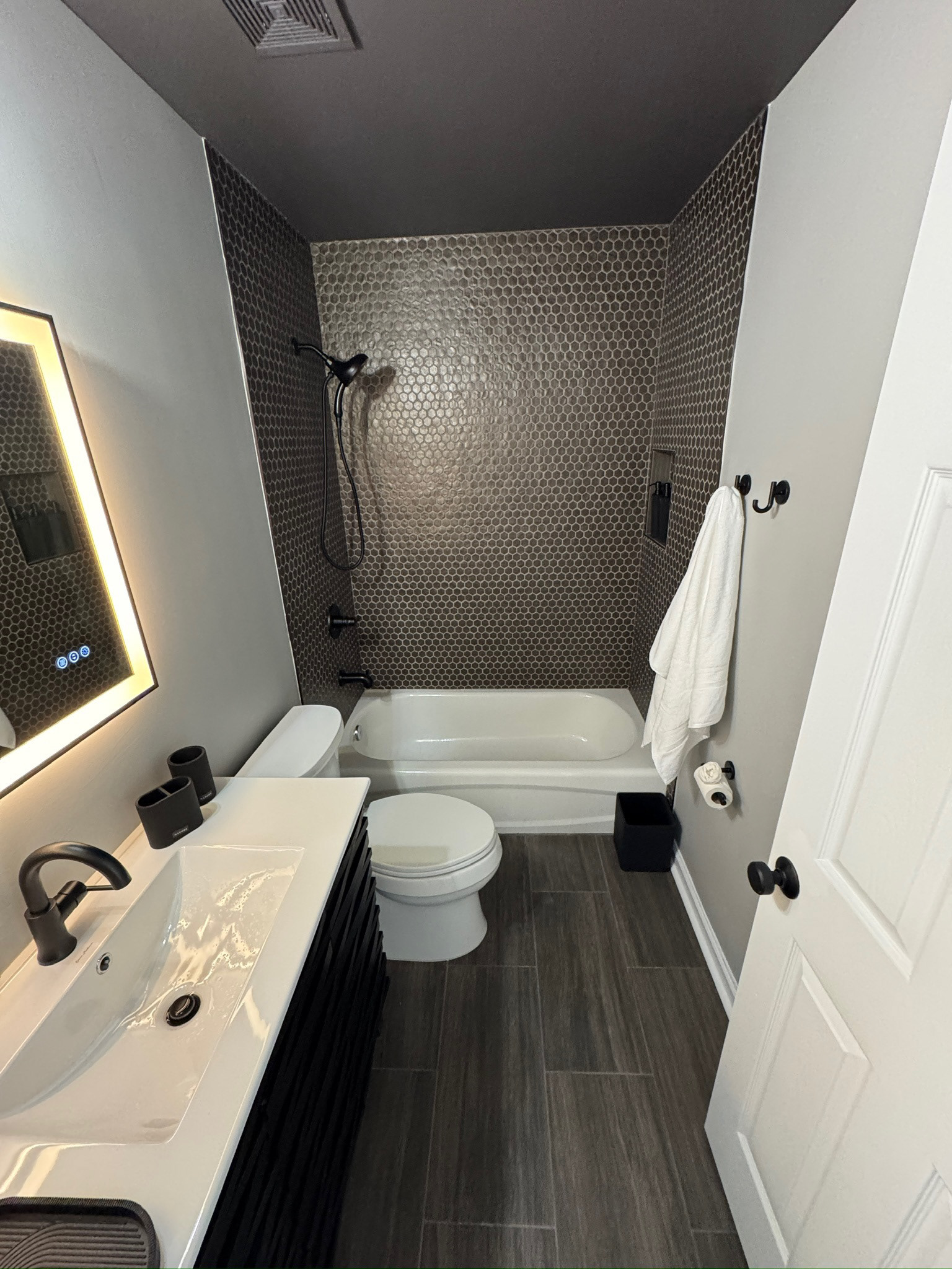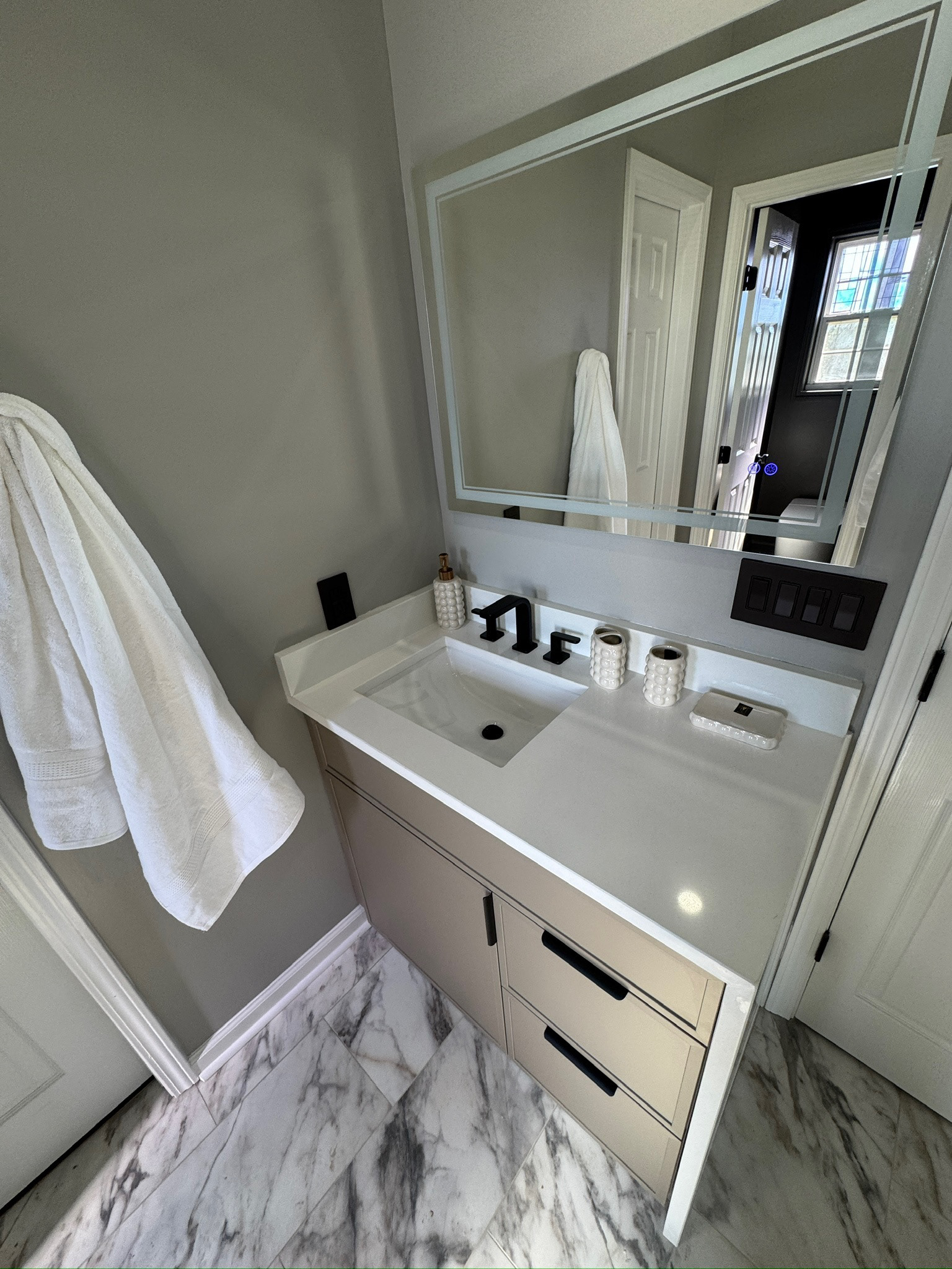 Across all three stories, no detail was left unnoticed. Every floor received new flooring, updated door hardware, fresh paint in every room and closet, new bathroom vanities and lighting, and recessed lighting throughout for a consistent, elevated glow.