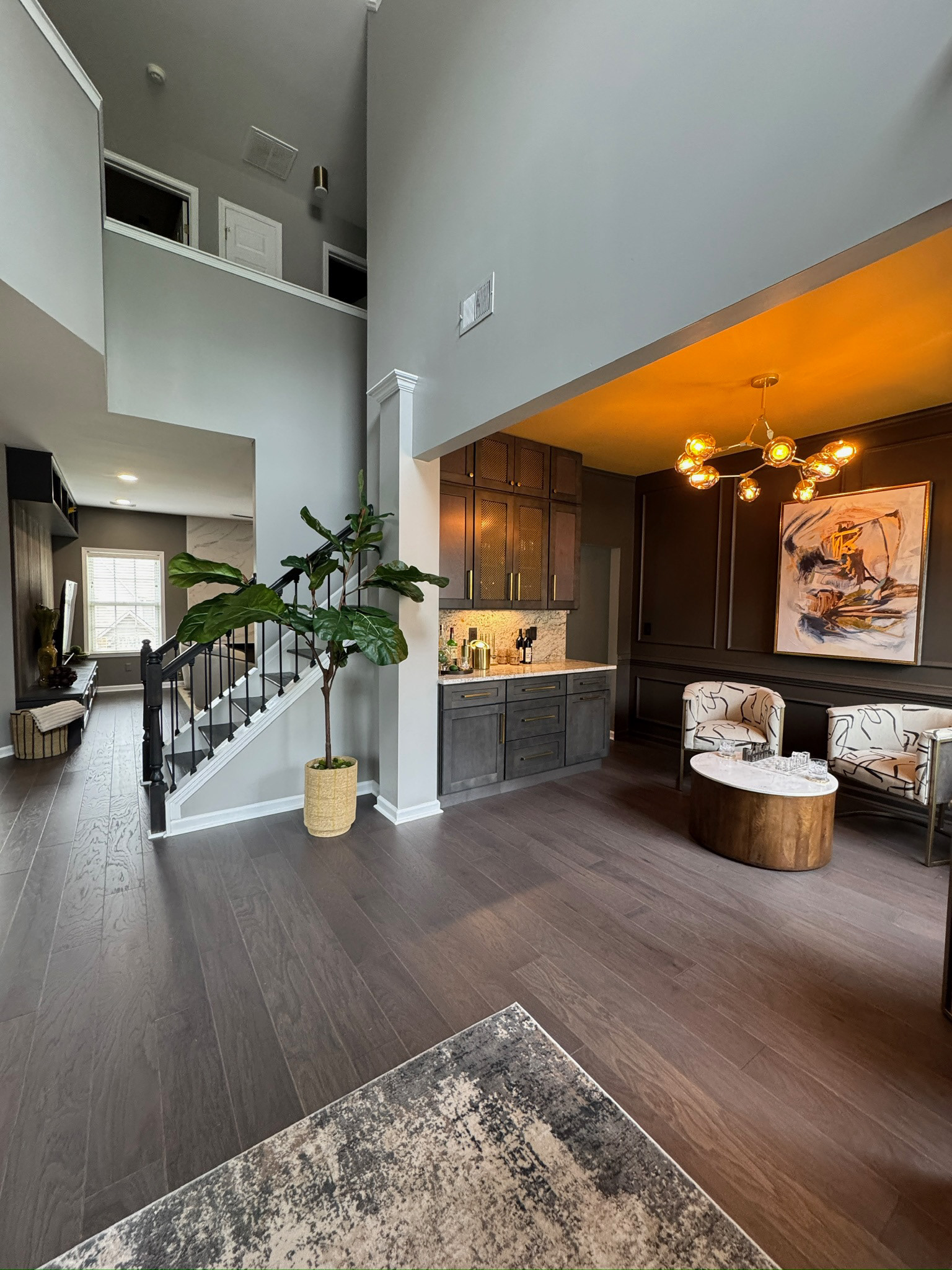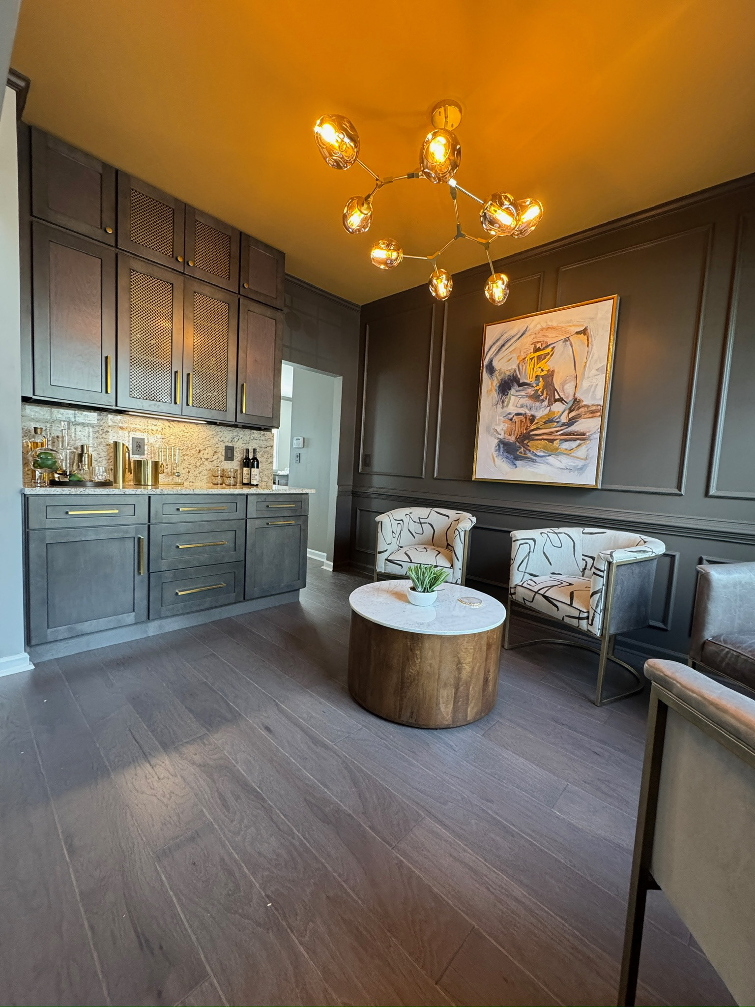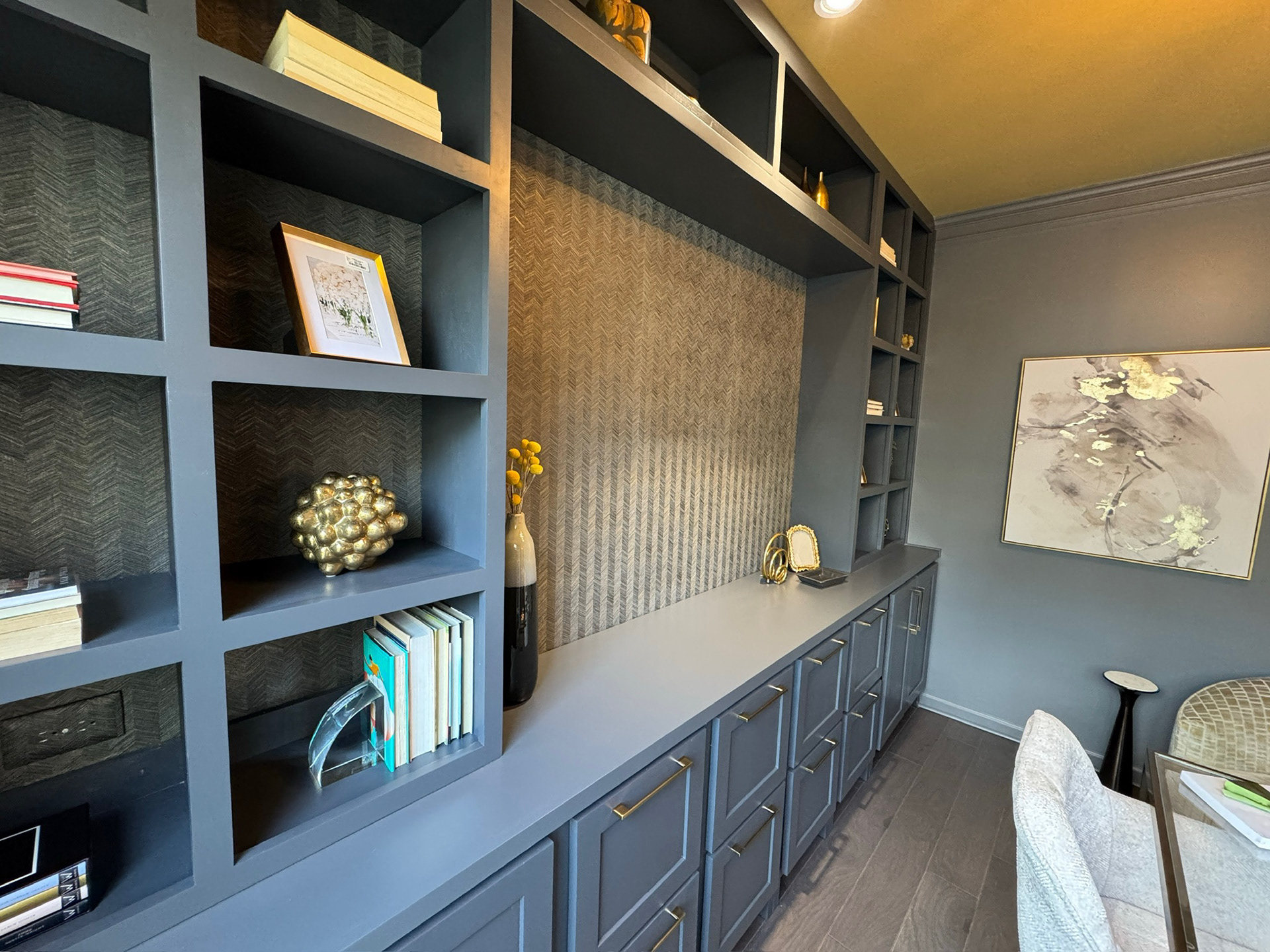 This 25+ year-old home received a sophisticated first-floor transformation designed for a new chapter of family life and entertaining. GOODESIGN reimagined the former children’s playroom as a stylish teen retreat and converted the traditional dining room into a chic lounge perfect for gatherings. Custom built-in shelving was added to both the office and family room, while the updated fireplace serves as a new focal point of the home. The result is a polished, grown-up space that feels glamorous, inviting, and ready to entertain.