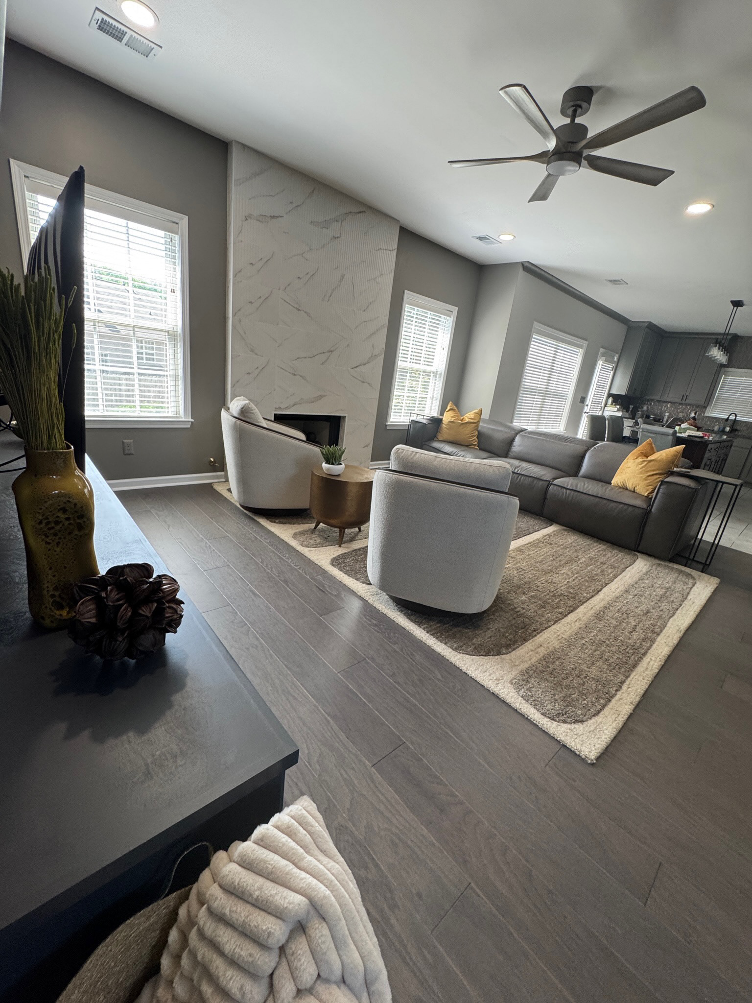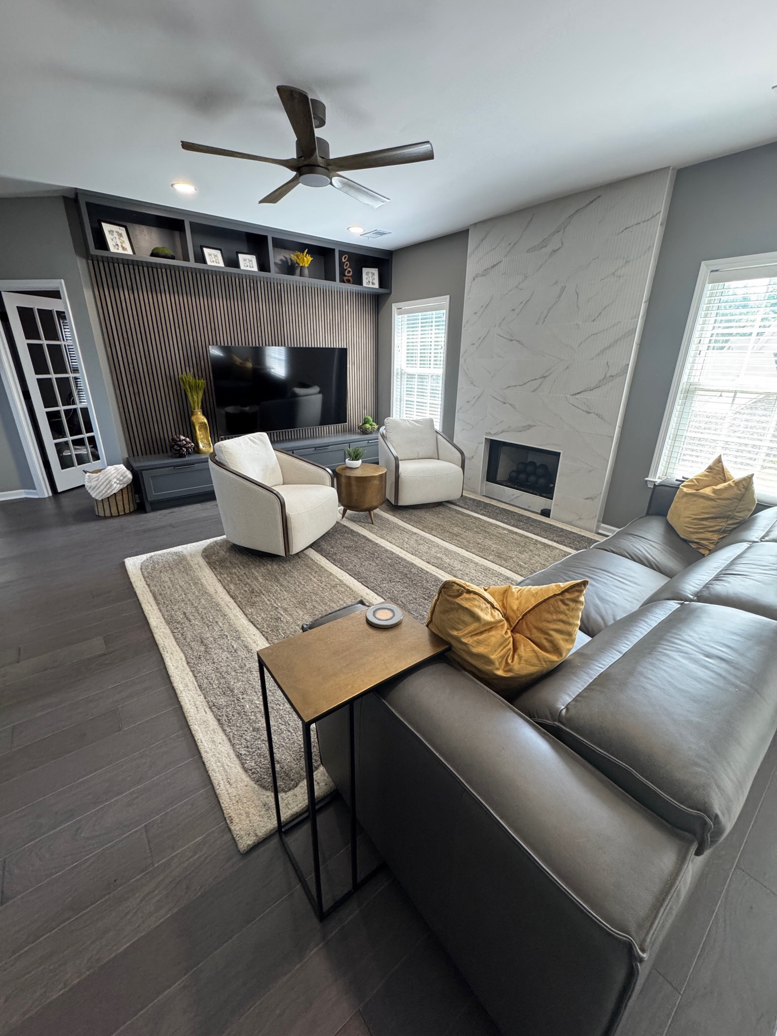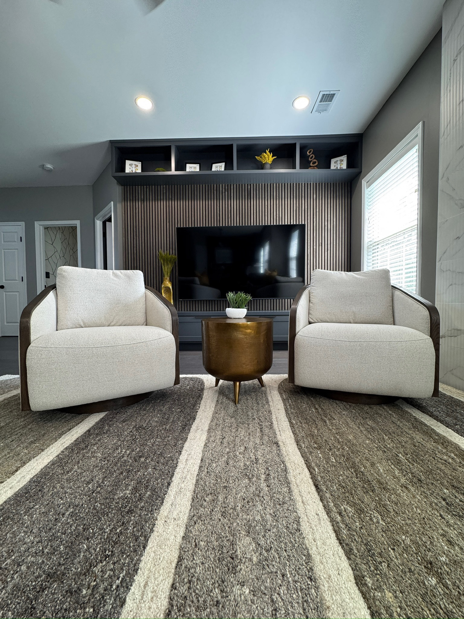 This 25+ year-old home received a sophisticated first-floor transformation designed for a new chapter of family life and entertaining. GOODESIGN reimagined the former children’s playroom as a stylish teen retreat and converted the traditional dining room into a chic lounge perfect for gatherings. Custom built-in shelving was added to both the office and family room, while the updated fireplace serves as a new focal point of the home. The result is a polished, grown-up space that feels glamorous, inviting, and ready to entertain.